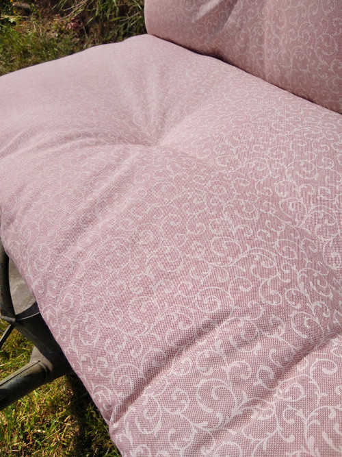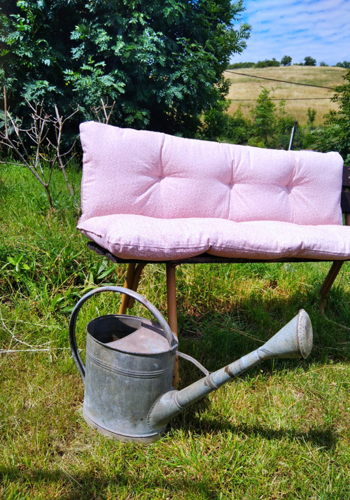 Sedák na lavici i s opěrkou 🙂 plněno několika vrstvami dutého rouna, prošívané.