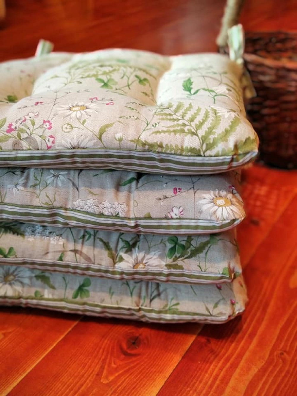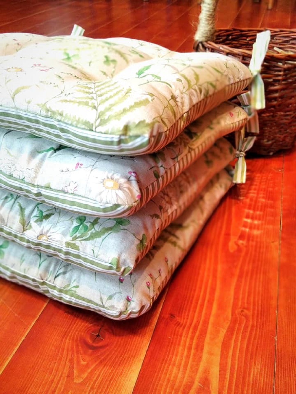 Sedáky na židle s nádherným motiven lučních květin 🙂 plněno několika vrstvami dutého rouna, prošívané.